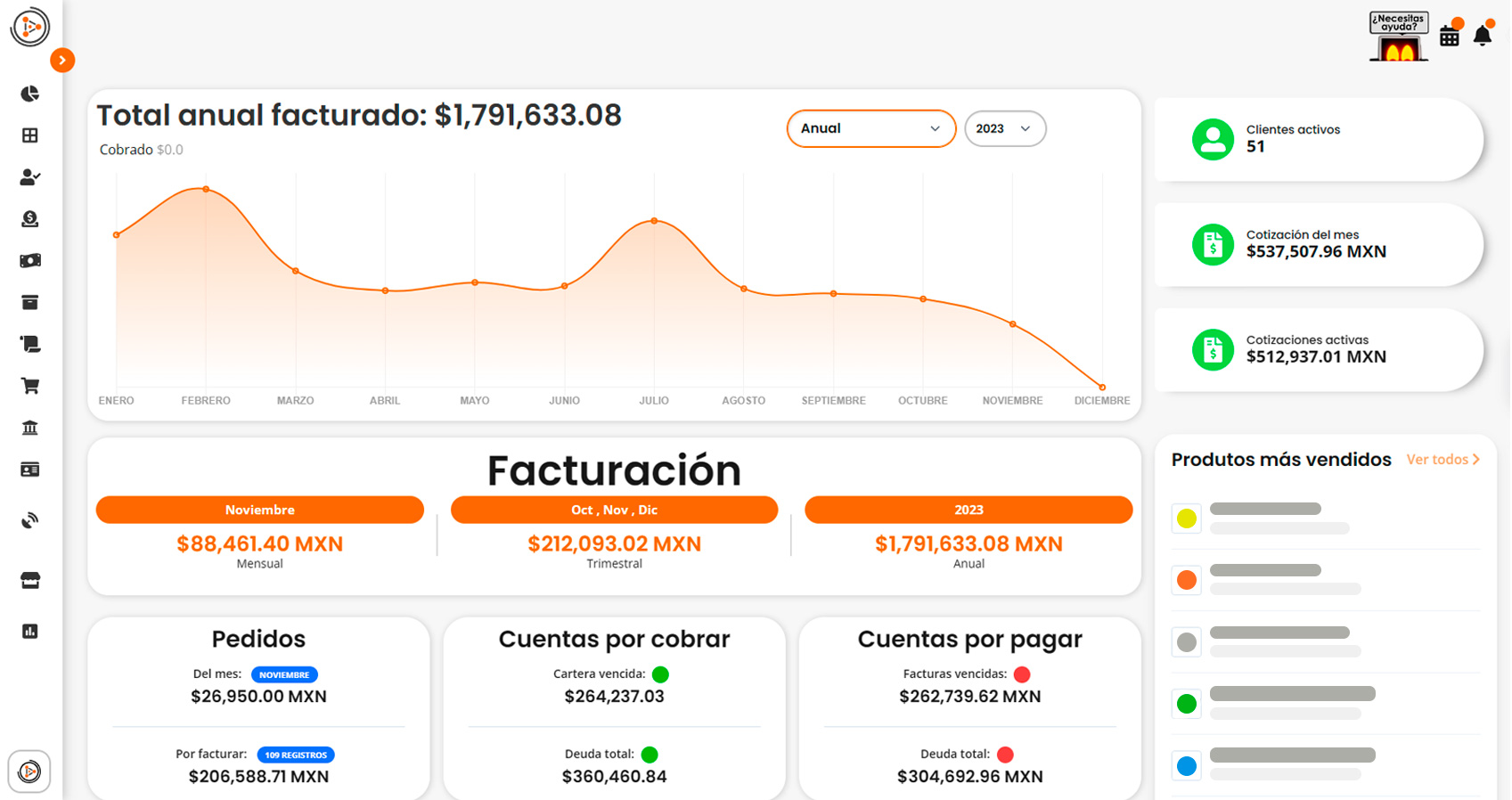 - Ideal para negocios con facturación hasta de $1,500,000.00 mxn / mes